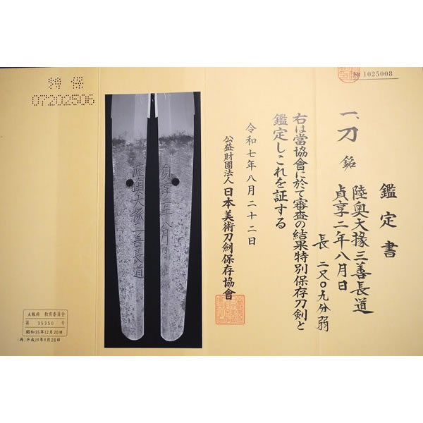 【価格:応相談】刀[陸奥大掾三善長道](特別保存) Katana: Mutsu Daijo Miyoshi Nagamichi. NBTHK TOKUBETSU HOZON