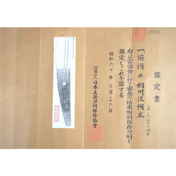 脇差[相州住綱廣](特別保存) Wakizashi : Soshu Ju Tsunahiro. NBTHK TOKUBETSU HOZON